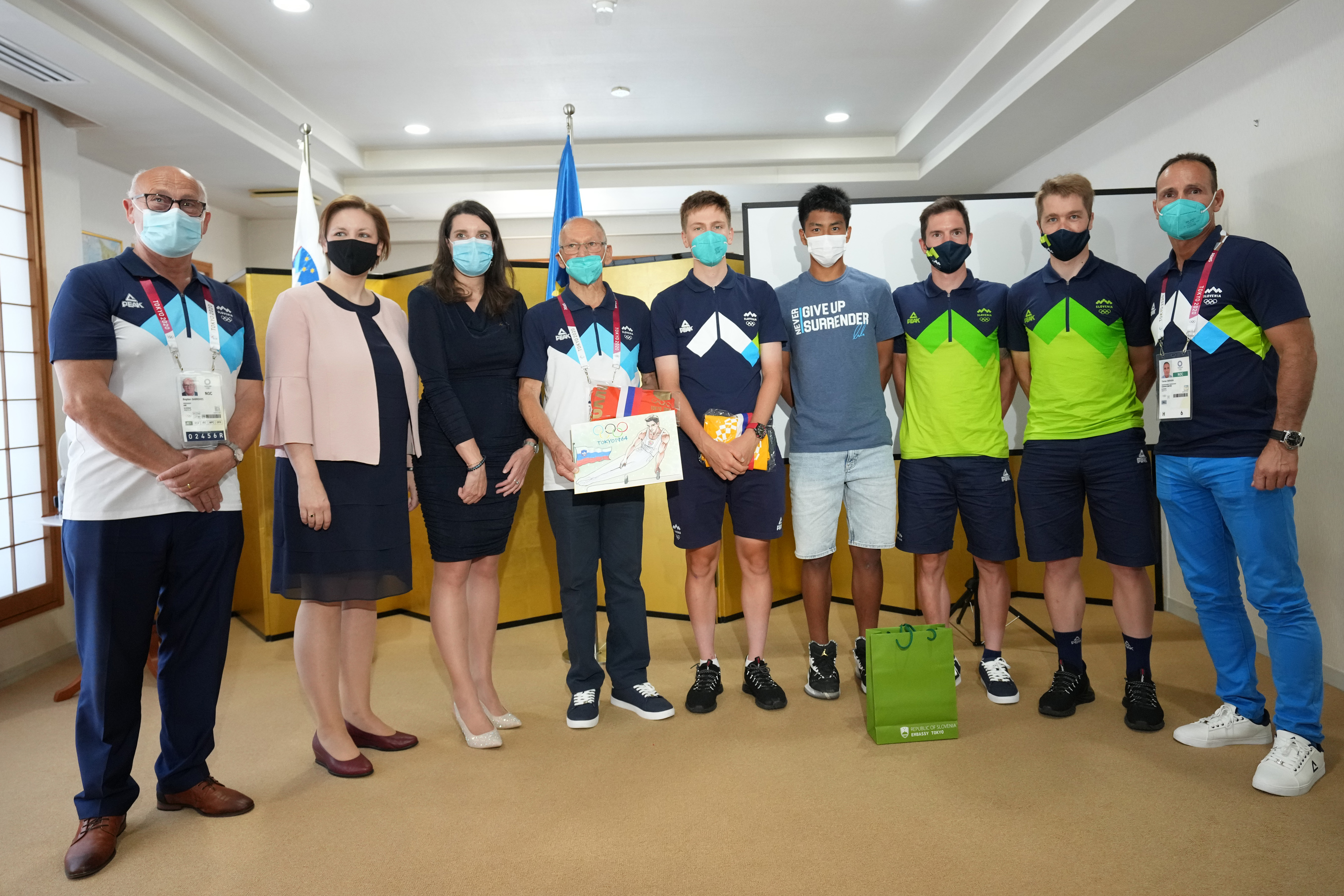 Predsednik Olimpijskega komiteja Slovenije Bogdan Gabrovec je mlademu navijaču slovenske reprezentance Hirakuju Nomuri na slovenskem veleposlaništvu v Tokiu izročil podpisan dres slovenske košarkarske reprezentance.
