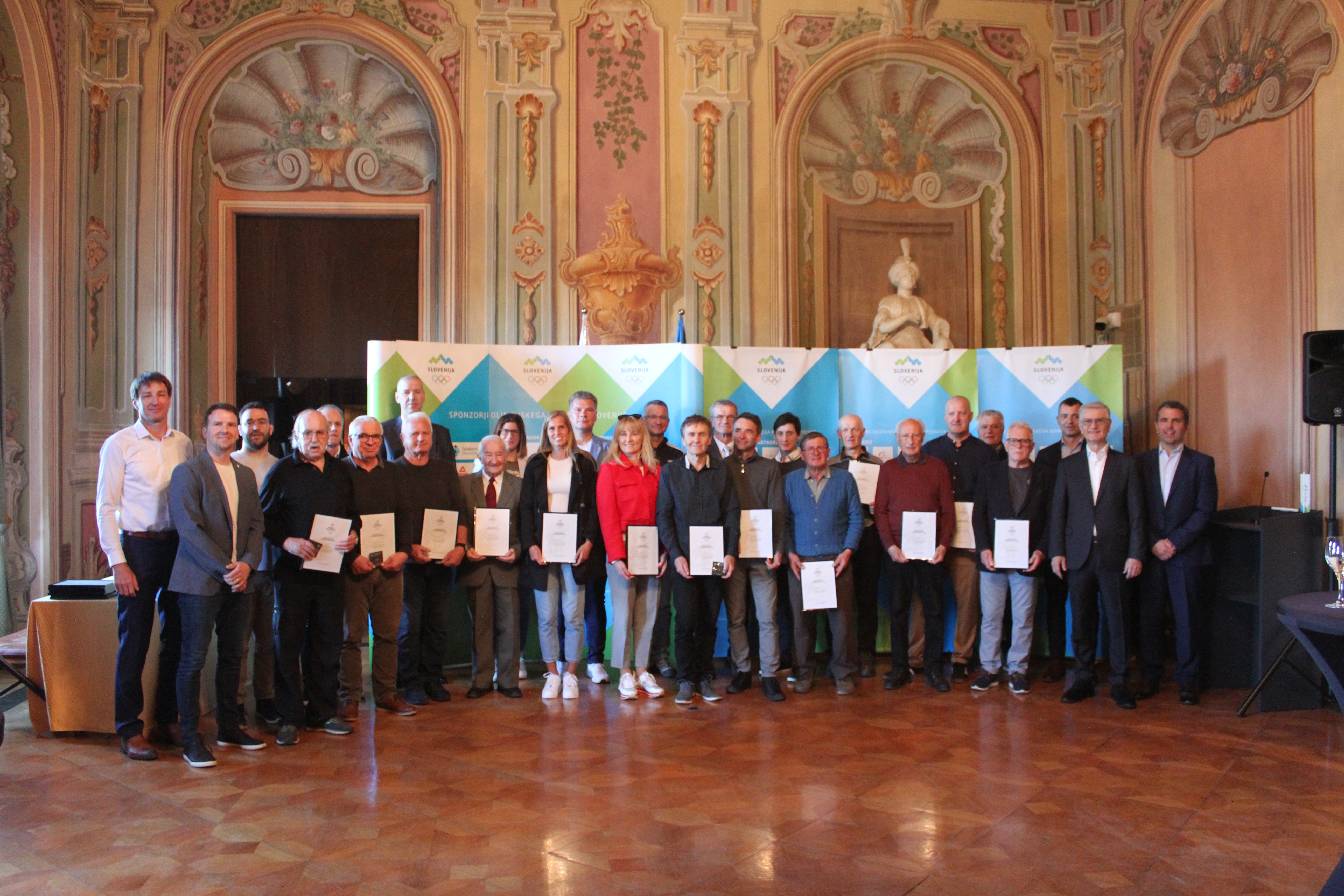 Druženje se je začelo v dvorani muzeja, kjer so po uvodnih nagovorih in pozdravih vršilke dolžnosti direktorice muzeja mag. Nataše Robežnik, predsednika OKS-ZŠZ Franja Bobinca in predsednika Kluba slovenskih olimpijcev ter olimpijca Iztoka Čopa, podelili OLY certifikate in značke.