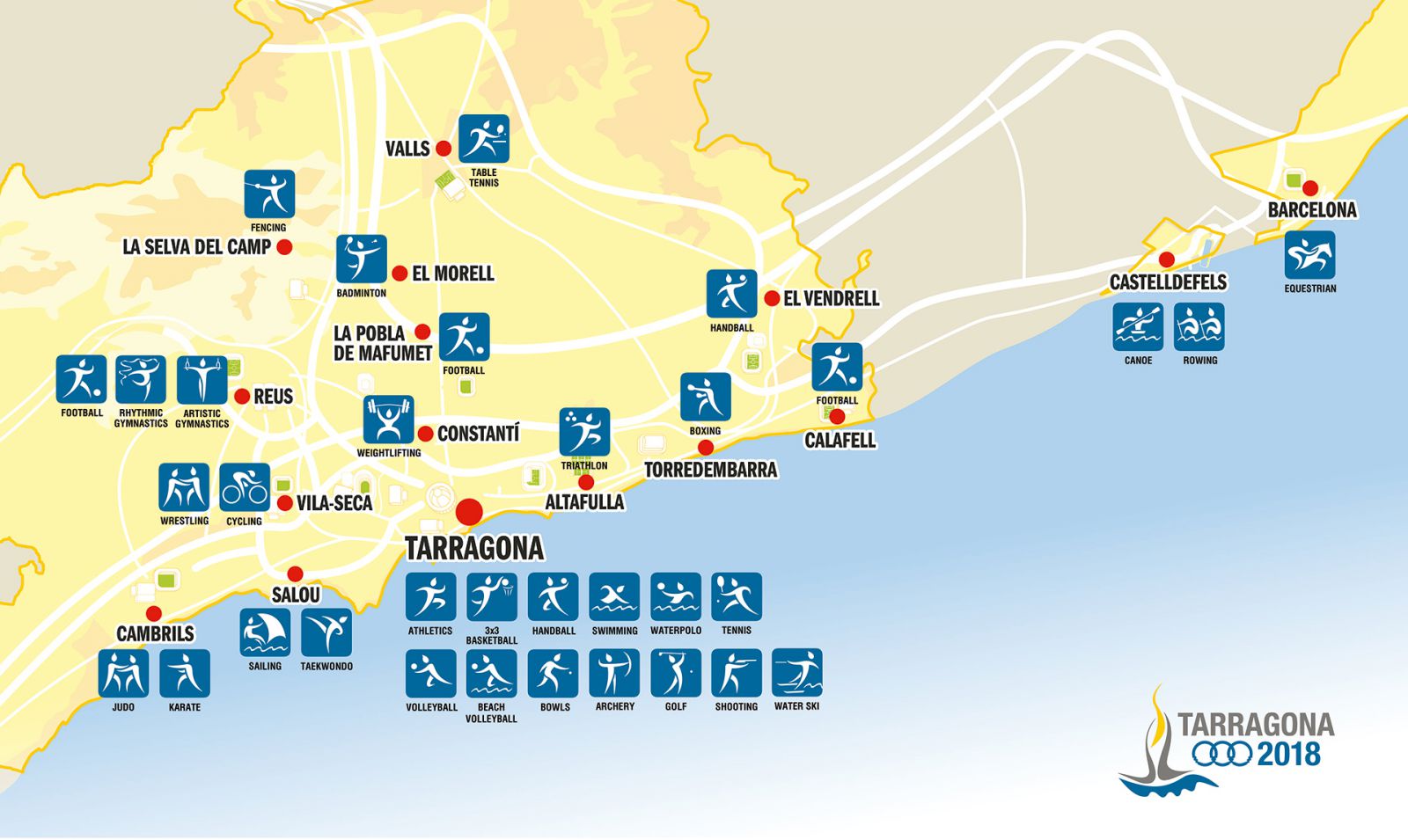 Organizatorji Sredozemskih iger, ki so bile prestavljene iz leta 2017 na letošnji junij, bodo v 10 dneh podelili odličja športnikom in športnicam v kar 31 športnih panogah. Glavno prizorišče iger, mesto Tarragona, bo tako imeli še kopico drugih prizorišč, ki bodo gostila letošnji športni dogodek evropskih sredozemskih držav.